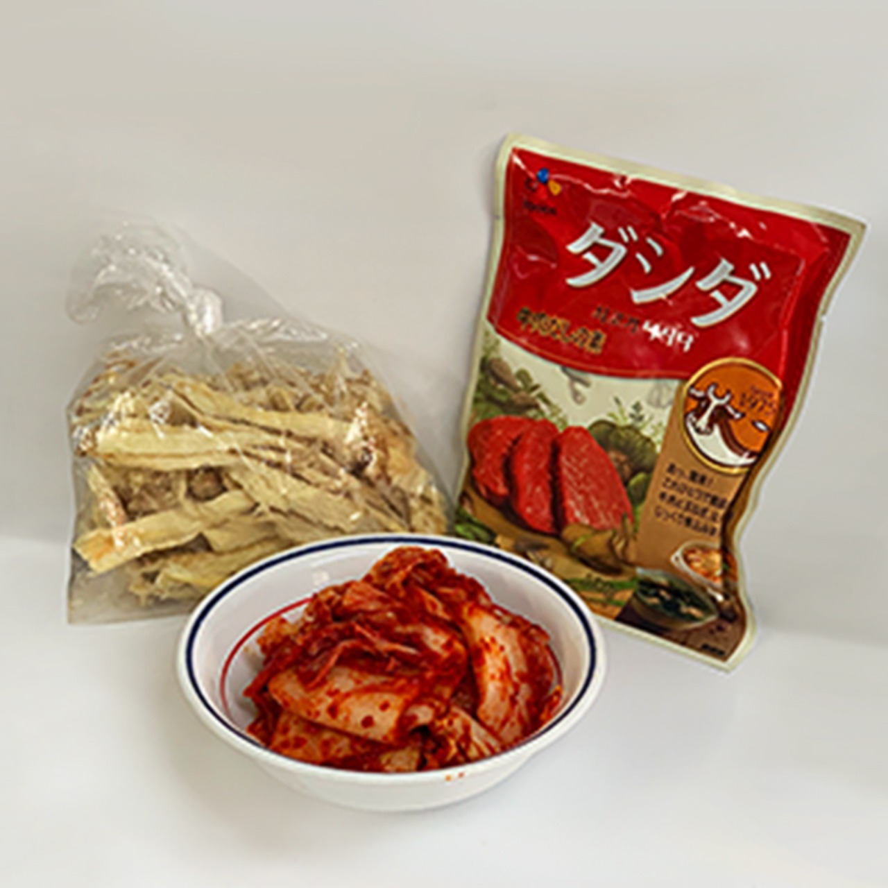ホシダラ+スープだし+白菜キムチ300gがセットになっています。